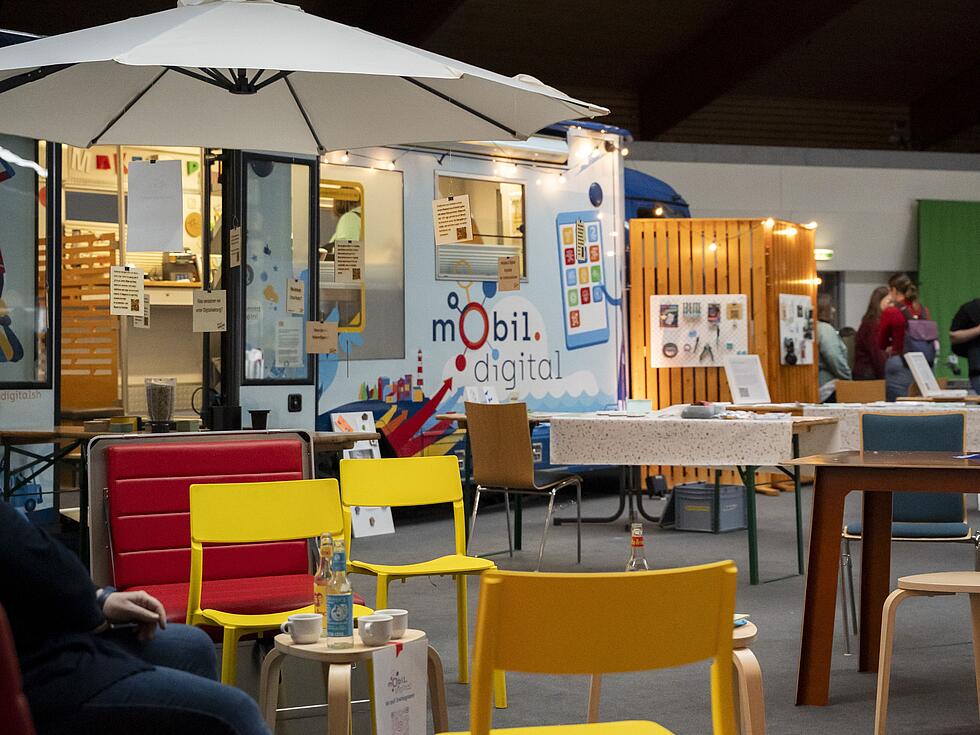 In der beheizten Halle auf dem NORLA-Gelände können Interessierte das Programm von mobil.digital an allen drei Tagen live erleben und hands-on ausprobieren. Das Angebot ist offen gestaltet – Besuchende können kommen, wann es ihnen passt, allein, im Team oder mit dem gesamten Kollegium.