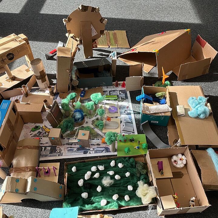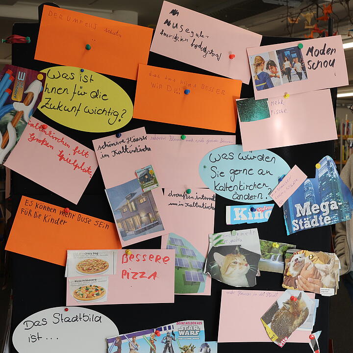 Eröffnet wurde der landesweite THEMENRAUM gestern in der Stadtbücherei Kaltenkirchen, in der sich alles um Zukunftsvisionen für die Stadt und ihre Bücherei dreht. Die Teilnehmenden beschäftigten sich damit, wie unsere Zukunft aussehen kann und erstellten gemeinsam eine Riesencollage mit Verbesserungsvorschlägen und Wünschen für Kaltenkirchen sowie ein Diorama ihrer ideellen Stadt. Direkt vor der Eröffnungsfeier konnte bereits eine 4. Klasse aus Kaltenkirchen an beiden partizipativen Aktionen teilnehmen und die Gäste mit ihrer Ideenvielfalt begeistern.