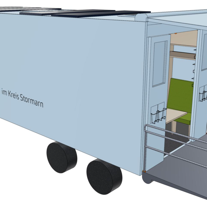Das neue Fahrzeug bietet Raum für längere Gespräche und individuelle Beratung. Für Kinder entsteht auf einer Empore ein geschützter Rückzugsort. Eine Klimaanlage sorgt für eine hohe Aufenthaltsqualität im Sommer wie im Winter. Ein besonderes Highlight ist die geplante Hebebühne am Heck des Fahrzeugs: Sie dient nicht nur als barrierearmer Einstieg, sondern kann auch als Bühne für kleinere Veranstaltungen genutzt werden. Darüber hinaus werden die Haltezeiten erweitert. Perspektivisch soll die Fahrbibliothek als „Open Library“ zugänglich sein – mit dem Bibliotheksausweis außerhalb der regulären Haltezeiten, z.B. während der Ferienstehzeiten oder an Wochenenden. Dieses Konzept ist deutschlandweit bislang einzigartig in der Fahrbibliothekslandschaft.