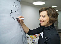 Außerdem zeigt Charlotte Hofmann, wie und wann Sprechblasen eingesetzt werden können und welche Gefühle Greg mit seiner Mimik und Körperhaltung zum Ausdruck bringen kann.